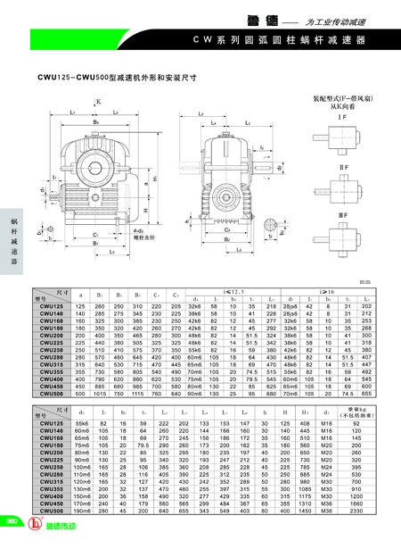 CWU圓弧圓柱(zhù)蝸杆減速機外形參數