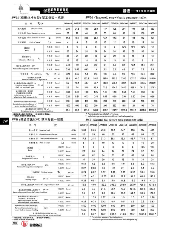 JW係列絲杆升降機分為JWM型(xíng)(梯形(xíng)絲杆型)和JWB型(滾珠絲杆型),JWM適用於低速低頻率(lǜ)的場合,主要構成部件為精密梯形絲杆副與高精度蝸輪蝸杆副。JWB型適用(yòng)於高速高(gāo)頻率和高性能的裝置中。