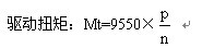 式中:Mt為驅動扭矩,P為驅動功(gōng)率,n為轉速(sù)。