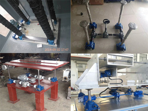 蝸輪絲杆升降機平台將電(diàn)機、減速機、轉向器、蝸輪蝸杆升降機通過聯軸器、連杆等巧妙地組合在一起,能(néng)夠達到多台穩定(dìng)、同步、往複升降的要求,也可實現翻轉運動。