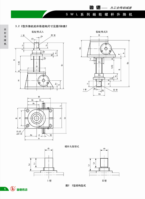 SWL蝸輪絲杆升降機的裝(zhuāng)配型式(shì)及(jí)外形結構尺(chǐ)寸