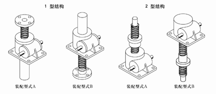 1型結構型(xíng)式的兩(liǎng)種裝配型式:A型:螺杆工作端(duān)在上;B型:螺杆工作端在下。