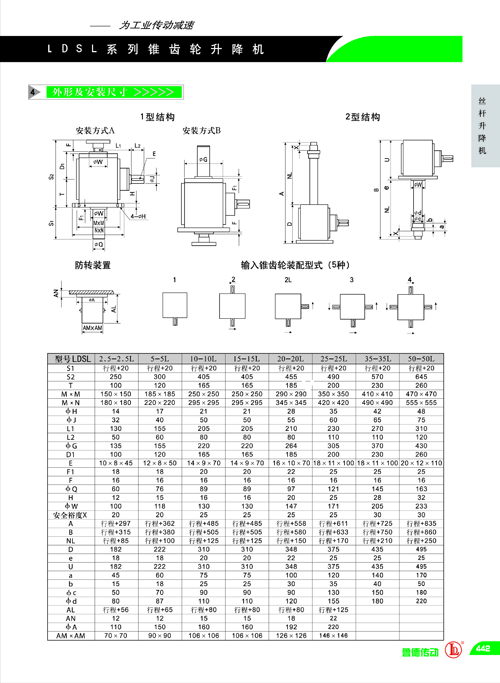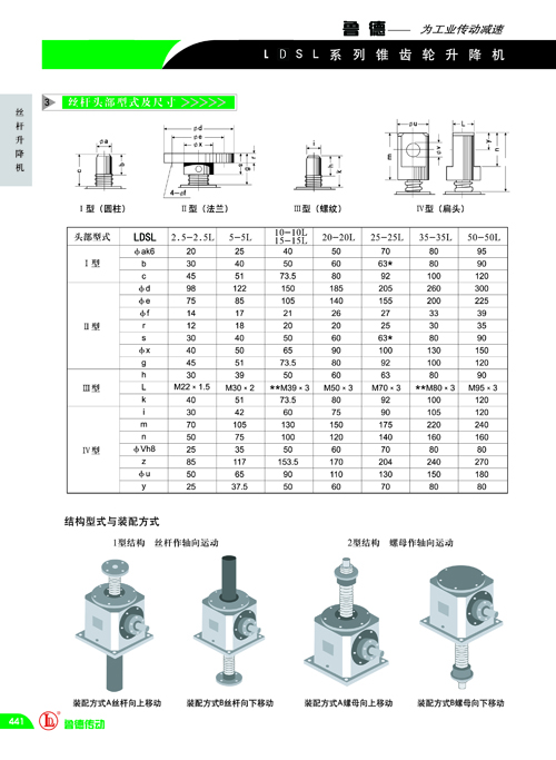 蝸(wō)輪絲杆升(shēng)降機(jī)相比較(jiào)其效率_,使(shǐ)用壽命更長,並具有體積小、重量輕、結構緊湊、安裝方便、使用靈活、可靠型高等諸多(duō)優點。_輸入轉速500r/min,_提升速度2.7m/min,能按_程序準確的控製調(diào)整提升或推進的高度,承載能力為2.5T~50T。壓力負荷較低(dī)時(shí)允許_的提升高度,提升不同負荷是允許(xǔ)的扭矩(jǔ)、功率、轉速不同,不同啟動持(chí)續率的_功率不同、輸入軸伸(shēn)處允許承受_的徑向(xiàng)力,允許裝齒輪,鏈輪或皮帶輪。
