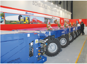 回(huí)轉支承不具備外包殼體,抗(kàng)腐蝕能力也不是很理想,而(ér)靠液壓油缸來推動輪胎的(de)轉向係統(tǒng)來說,輪胎的旋轉角度範圍也受到了很大的限(xiàn)製。而選用回轉驅動裝置作為回轉部件來說,不但可以使部件的抗腐蝕能力有所提升,還可以加大每(měi)組輪胎的轉向角度。