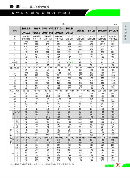SWL係列蝸(wō)輪螺杆升(shēng)降機提升高度可根據用戶要做製造,承載能力為2.5T~120T,_提升速度(dù)為2.7m/min,_輸入轉速1500r/min,工作環境溫度為-20°C~100°C。廣泛應用於冶金、石化、機械、建築、水利、醫療、文化、衛生等各個(gè)領域。