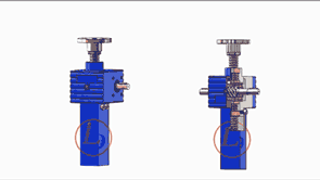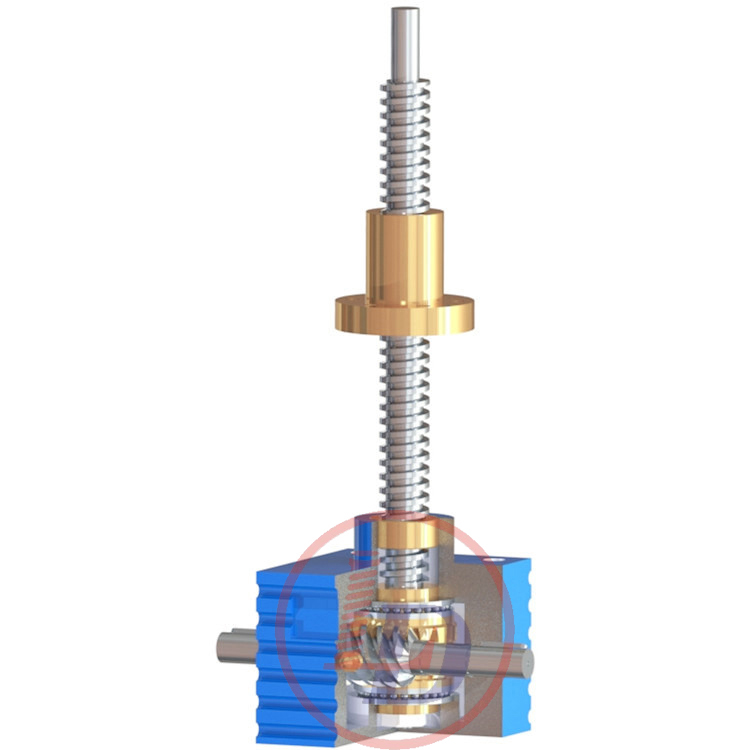 的原理為蝸杆驅動蝸輪旋轉,蝸輪中間為內螺紋孔機構(與絲(sī)杠相齧合),再將旋轉(zhuǎn)運動傳遞至絲杠上下直線運動。