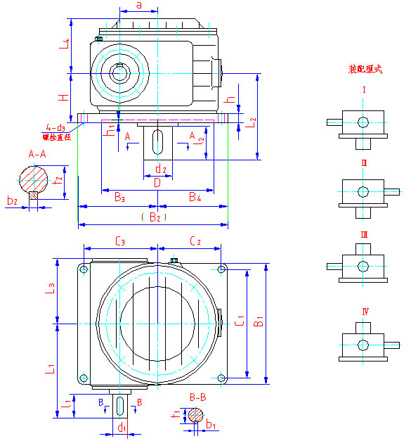 尺寸 型號 | a | B1 | B2 | B3 | B4 | C1 | C2 | C3 | D | h | h1 | i ≤ 12.5 | ||||