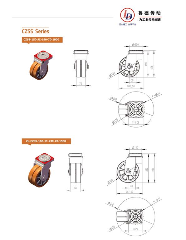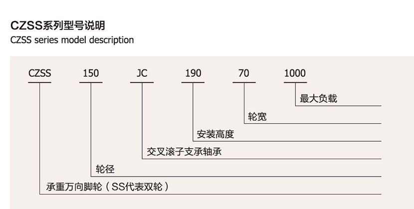 CZSS輪芯采用精密鑄鐵或精密壓鑄鋁合(hé)金成型,回轉機構采用專 業設計的非標滾珠軸承(chéng),經特殊工業製造,已達到(dào)轉動靈活、抗衝擊(jī)、耐疲(pí)勞的作(zuò)用。輪麵采(cǎi)用化學反應(yīng)澆鑄的優 質進口聚氨酯彈性體,行走噪音低、無壓痕、保護地麵(miàn)、耐磨、抗切割。