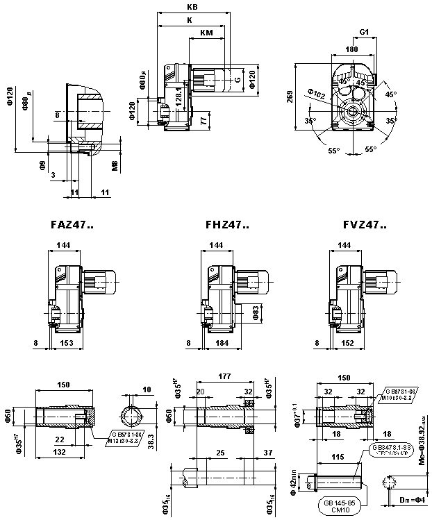 外形安裝(zhuāng)尺寸(F47、FA47B、FH47B、FV47B、FF47、FAF47B、FHF47B、FVF47B、F..47/G、FA47、FH47、FV47、FAZ47、FHZ47、HVZ47)
