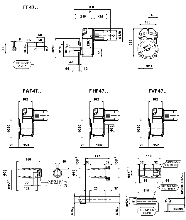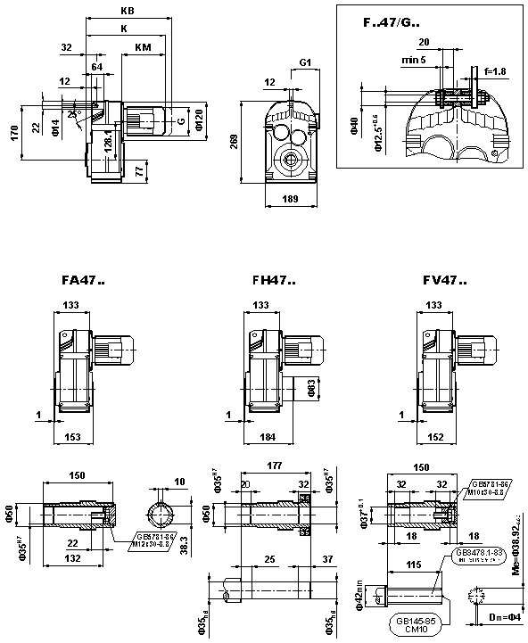 F係列減速(sù)機(jī)47KW功(gōng)率安裝尺寸