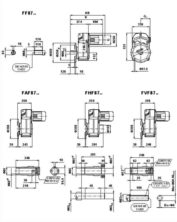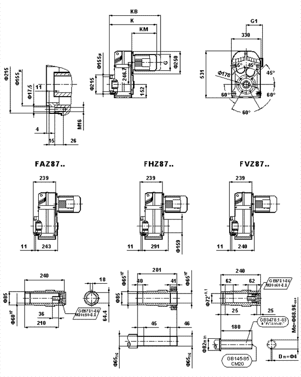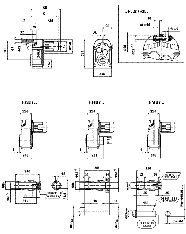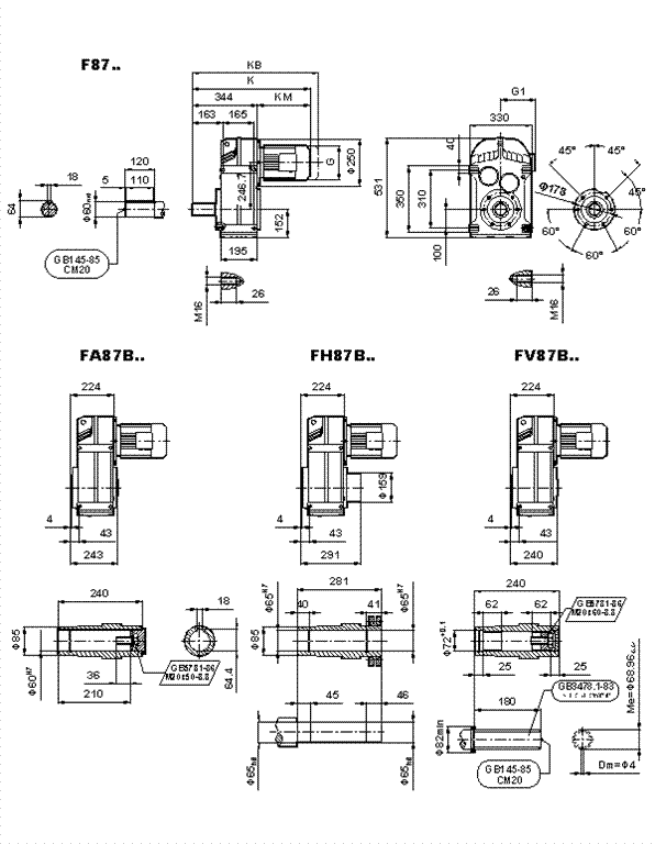 F係列減(jiǎn)速機,F係列斜齒輪減速機,F係列傘輪減速機;外形安裝尺(chǐ)寸(F87、FA87B、FH87B、FV87B、FF87、FAF87B、FHF87B、FVF87B、F..87/G、FA87、FH87、FV87、FAZ87、FHZ87、HVZ87)