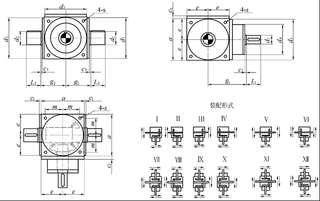注:d2可作為輸入端,此(cǐ)時,SPS型轉向箱在許用速度範圍內可作換向傳動 |